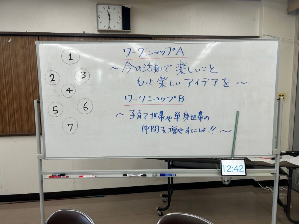 「今の地域活動で楽しいこと」「もっと楽しくするには?」「子育て世帯や単身世帯の仲間を増やすには?」といったテーマで、活発な意見交換が行われました。